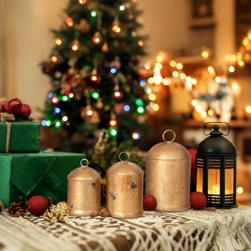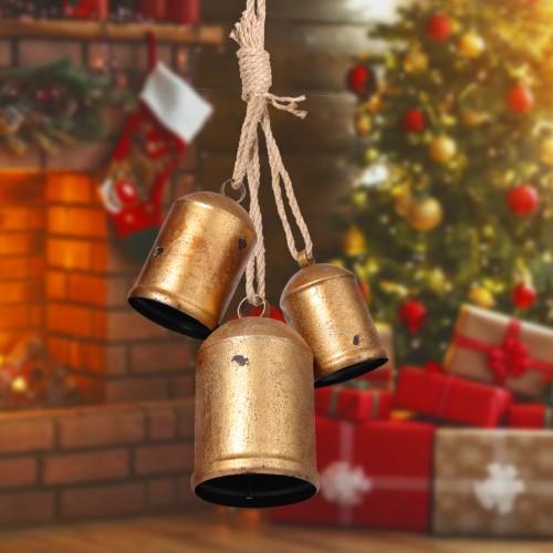 • Christmas Bell Sizes: This rustic Christmas bell set includes three vintage gold bells of different sizes. The three-in-one Christmas bell set measures 22.8 inches in total. The bells measure 3.14 x 5.5 inches, 2.75 x 4.72 inches, and 2.36 x 3.93 inches. The three sizes create a layered effect, making it perfect for Christmas tree decorations.