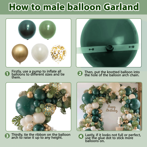 - 【Easy to Assemble】: Our green and white balloons can be inflated with air or helium (inflation should not exceed 85%). Then, use the included chains and balloon stickers to assemble balloons of different colors and sizes together. You can DIY your own balloon arch and hang it in windows, doorways, dining tables, walls, or anywhere else you like.